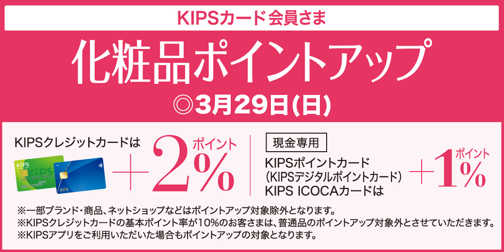 KIPSカード会員さま 化粧品ポイントアップ