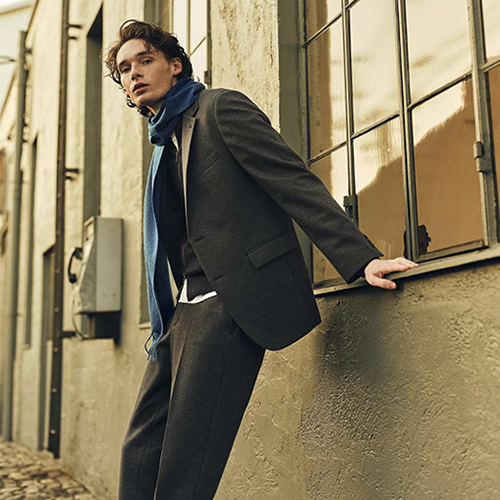 濃色ベースの細かい千鳥柄は、一見無地に見えるほどさりげないデザイン。