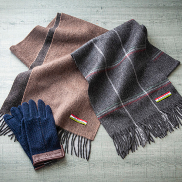 シンプルで使いやすく、カシミヤで肌触りの良いマフラーや、ビジネスからカジュアルスタイルにも合わせやすいグローブをご紹介。
