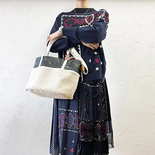 異素材の切り替えがカジュアルな印象でコーディネートのポイントに。