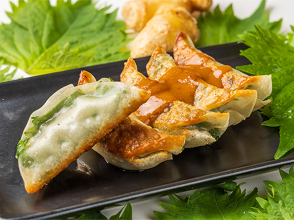 まるっとしそを1枚巻いて包んだ贅沢なしそ餃子。