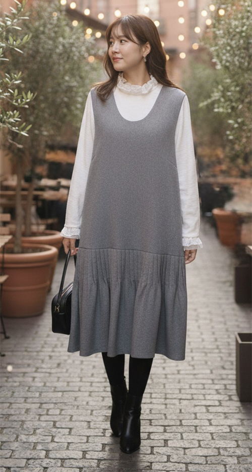 〈ヒルク〉 日本製デニムを基軸に、「定番をおしゃれに着こなす」をコンセプトとした飽きのこない、シンプルでありながらカラフルなファッションを楽しめるブランドです。ワンピースポリエステル50%・レーヨン40%・ウール10%10,890円 〈トリプルアローズ〉 兵庫県の芦屋で生まれたトリプルアローズは「ナチュラル&スタンダード」をコンセプトに、ベーシックなデザインに少しだけ女性のかわいらしさや大人っぽさをミックスしました。素材の持つ色や風合いを最大限に活かしたアイテムは“日常のおしゃれ着”として着る人それぞれの個性をさりげなく引きだし、自然で飽きのこないコーディネートをお楽しみいただけます。シャツワンピース綿97%・麻3%10,890円