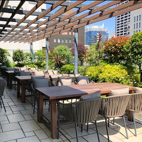 足を伸ばせる居心地のよいマットレス席や開放的なガーデンテラス席で、和のおもてなしの心をつくしたお料理を満喫。