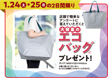 1/24(土)・25(日)の2日間、店内アンケートにお答えいただいた方にエコバッグをプレゼント!