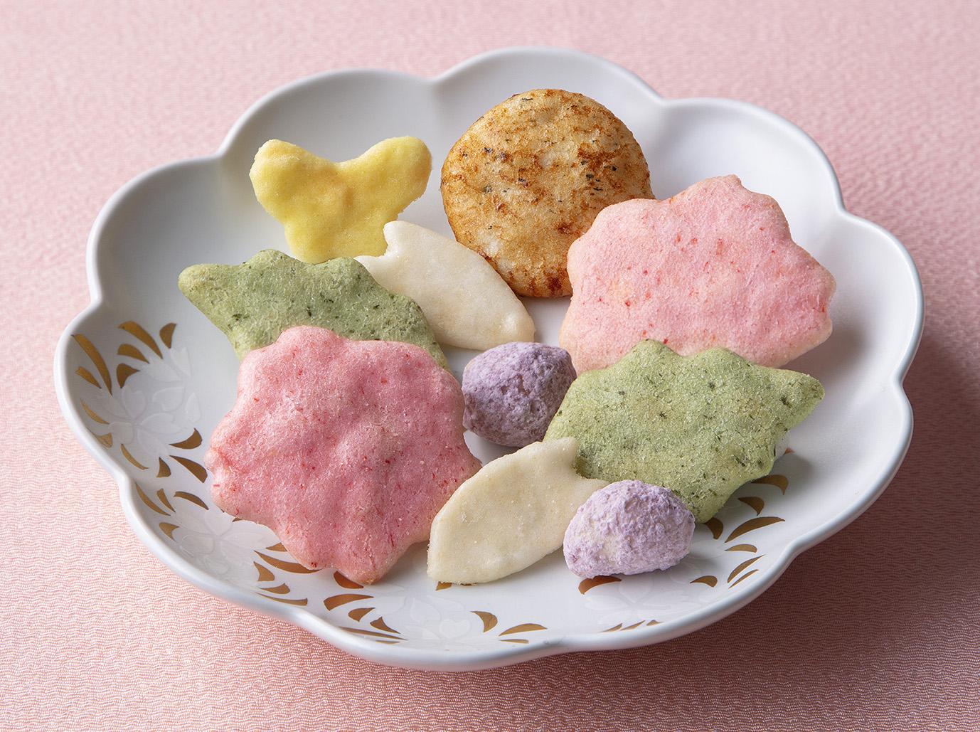 桜や蝶々など春ならではの素材・形の米菓を詰合せたふきよせです。
