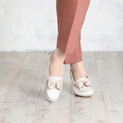 上品なグログランリボンに一粒ビジューが輝く、大人可愛いモカシンです。