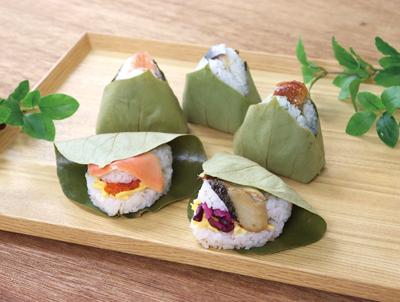具材に工夫をし、柿の葉すしをおにぎりにしてみました。