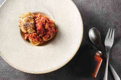青竹炭で香ばしく焼いた大和肉鶏に濃厚ポルチーニの旨味が重なる贅沢ソース。