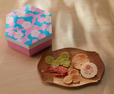 心はずむ季節の味わいを散りばめた、海老せんべいの詰合せ。