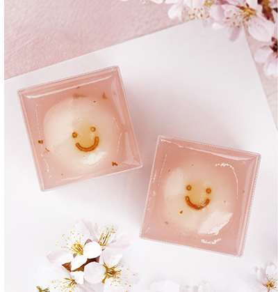 桜葉入りの自家製桜餡タレで春を装うにっこり笑顔が可愛らしいお団子。