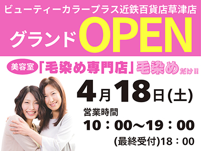 【予告】4月18日(土)草津店4階 <ビューティーカラープラス>グランドOPEN