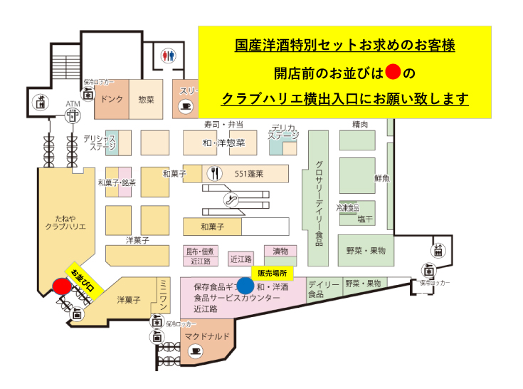 ※開店前のお並び場所:1階南出入口前(クラブハリエ横出入口)