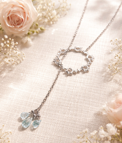 優しい気持ちになれるようなレース調のシルバーアクセサリー。投げ輪に由来した名前の留め具のないネックレスです。