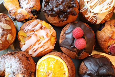 マフィンやクッキーなどの焼菓子のほか、シフォンケーキなど、こだわりの商品をご用意しました。