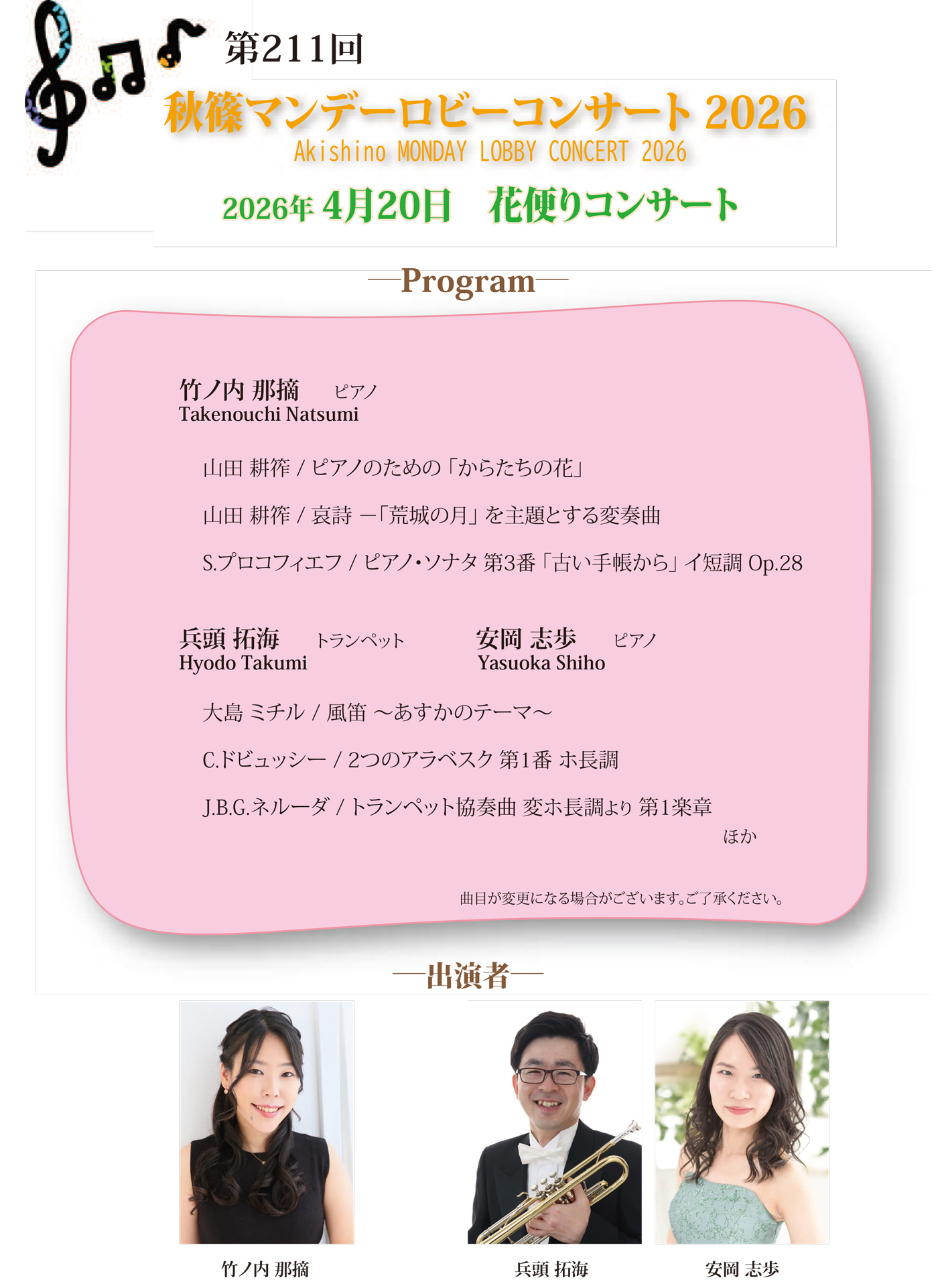 秋篠マンデーロビーコンサート2026
