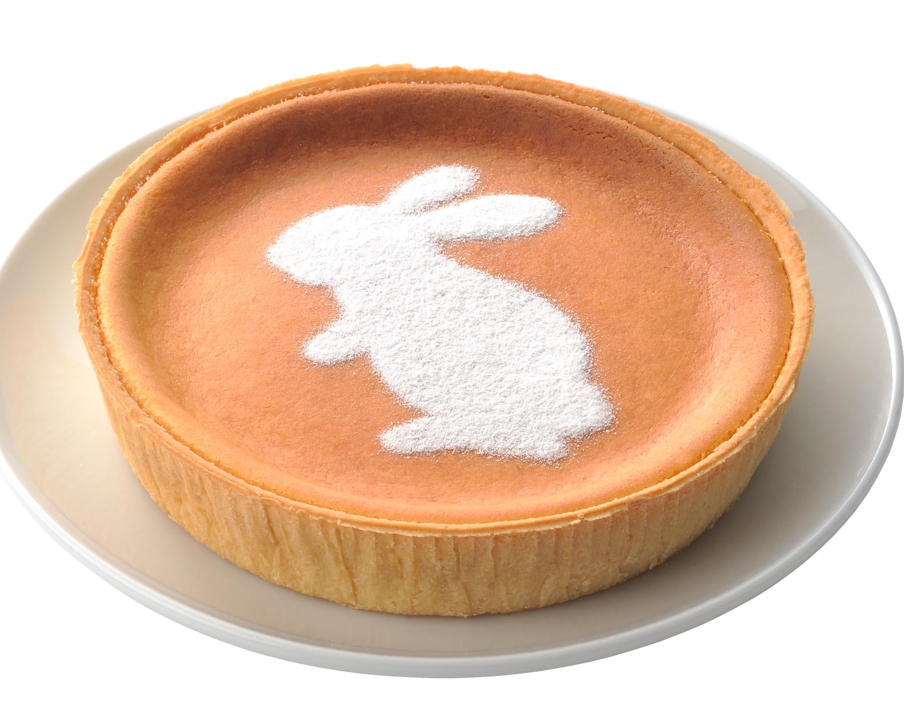 モロゾフ人気のデンマーククリームチーズケーキにホワイトチョコレートパウダーでかわいいうさぎをあしらいました。