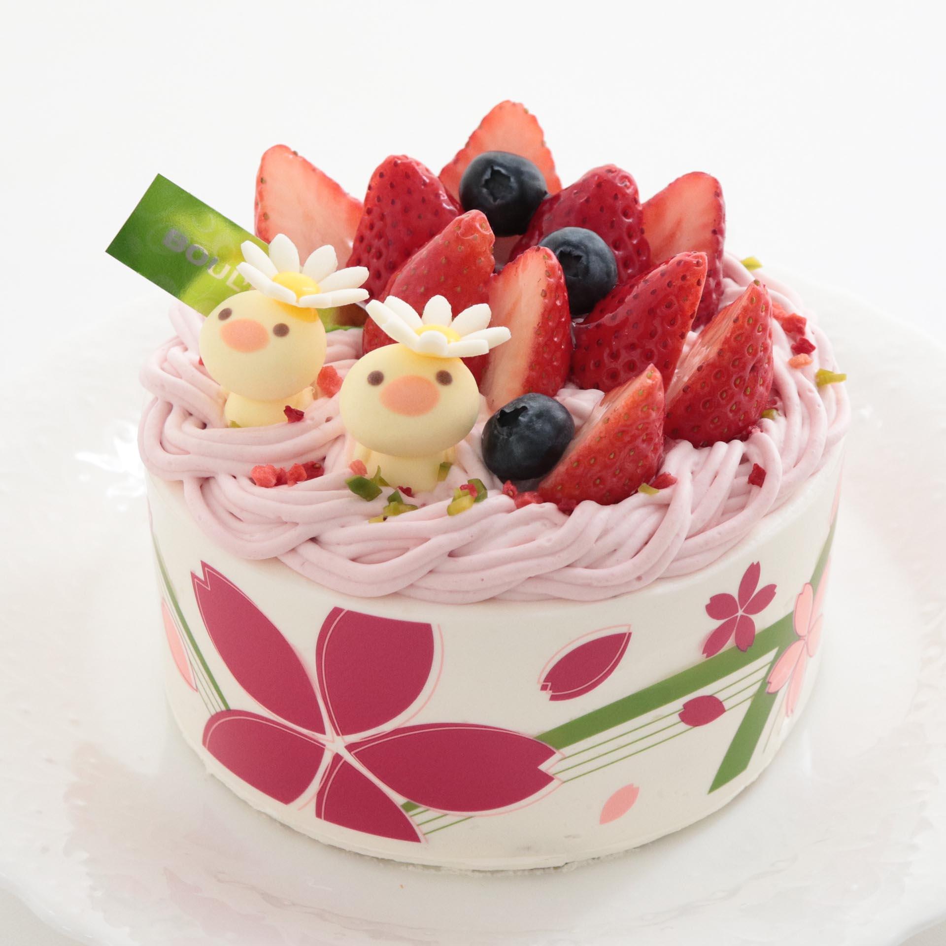 苺ショートに苺クリームを絞った鳥の巣デザインのケーキ。