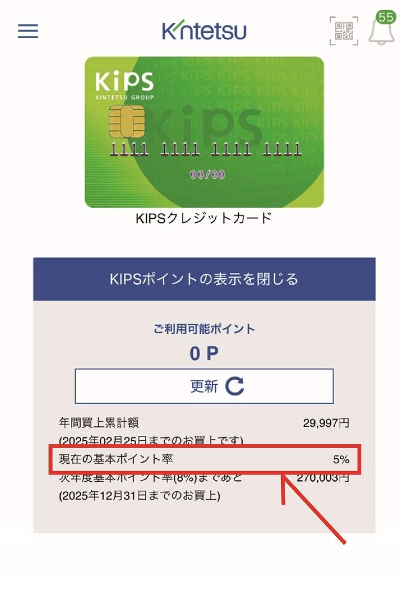 ※KIPSクレジットカードの基本ポイント率は近鉄百貨店アプリの会員証画面でご確認いただけます。