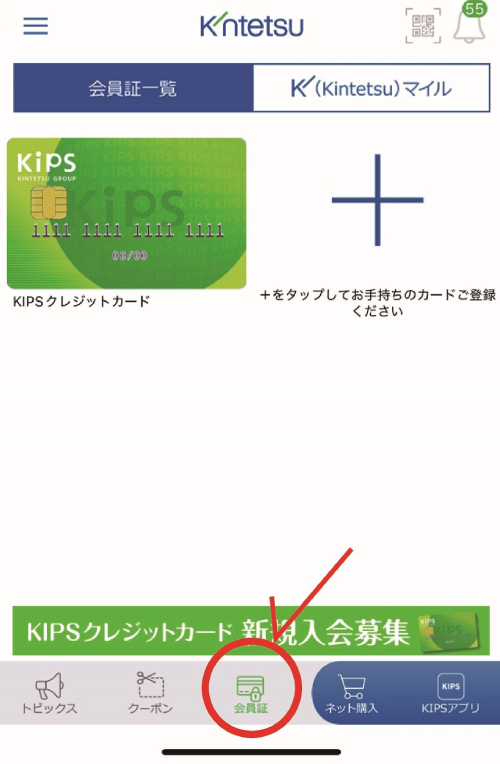 2.「近鉄百貨店アプリ」に対象のKIPSクレジットカードをご登録