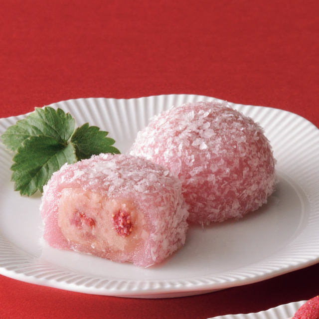 フリーズドライのいちご入りみるく餡を求肥でつつみました。