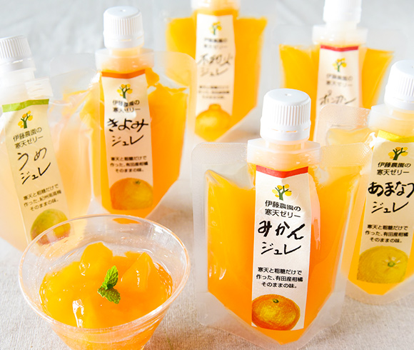 手しぼり100%ピュアジュースをベースに作った寒天ゼリー。