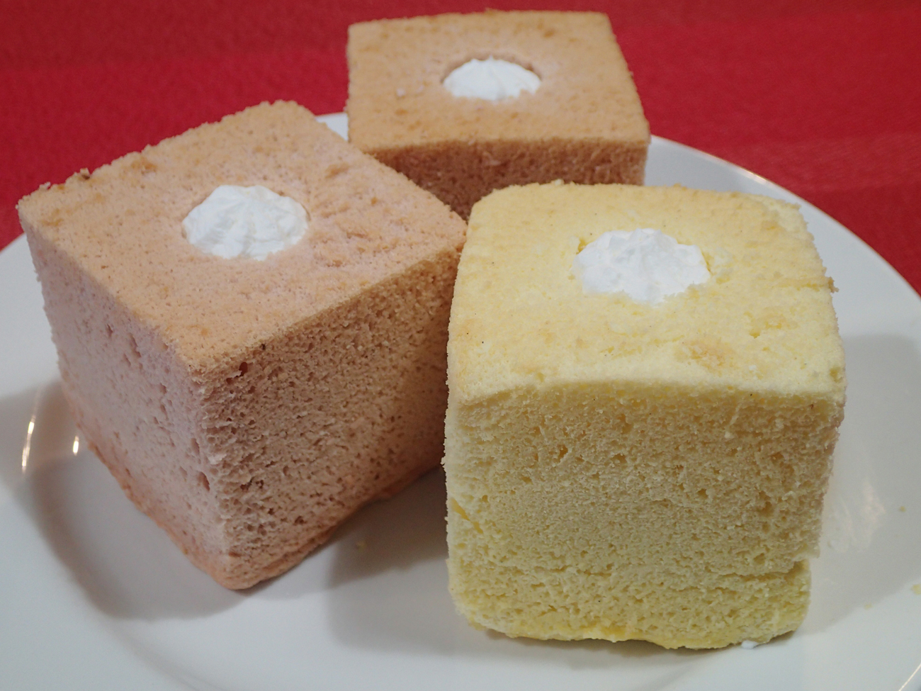 キューブシフォン(プレーン・ストロベリー・チョコ) 各種1個 各475円
