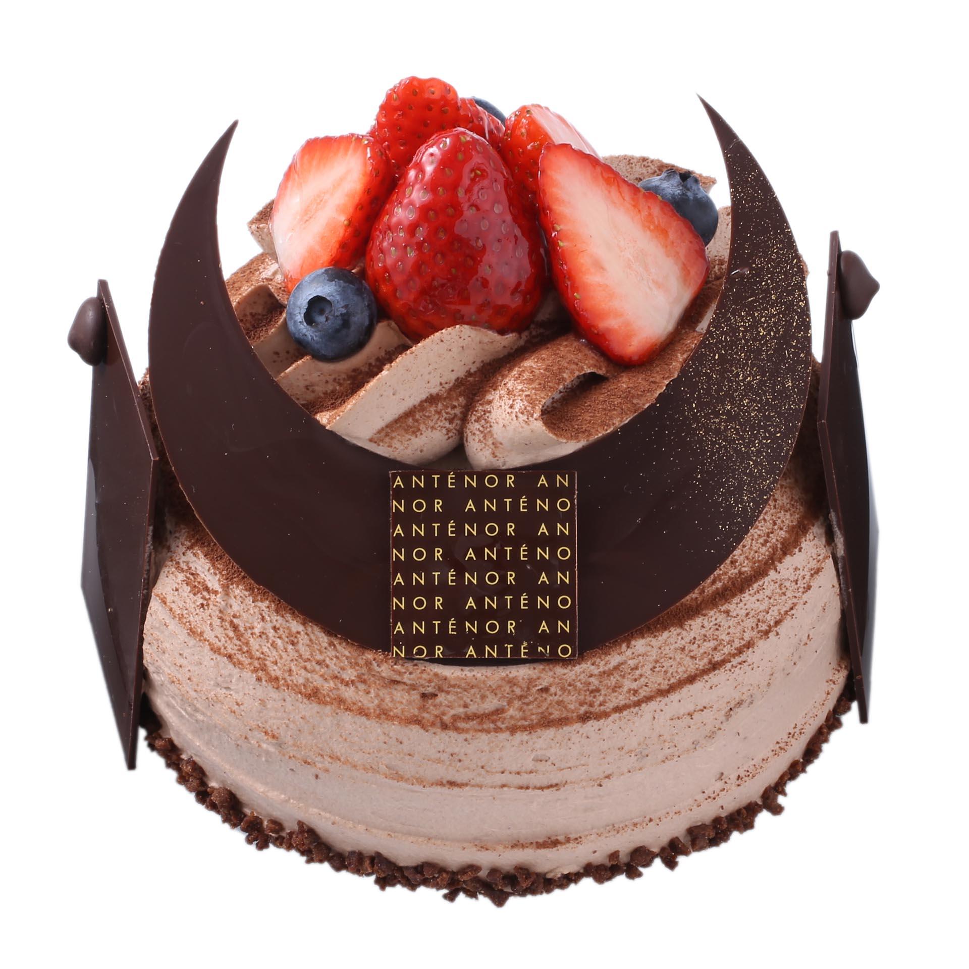 チョコスポンジに苺や苺のコンフィチュール、チョコクリームを重ねてベリーを飾り、「かぶと」の飾りをチョコで形どった、こどもの日にぴったりなケーキです。