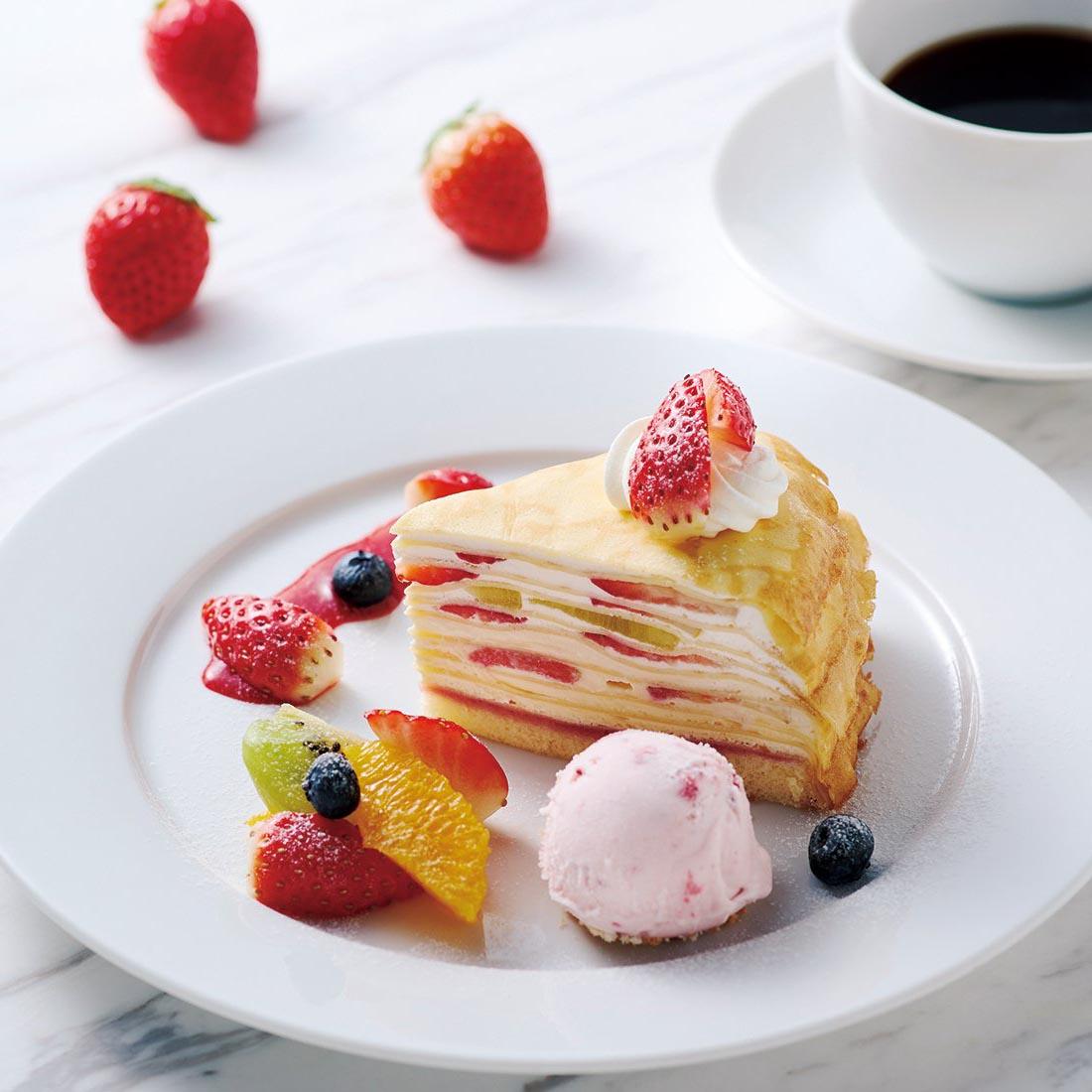 春いちごとキウイのミルクレープとお飲物