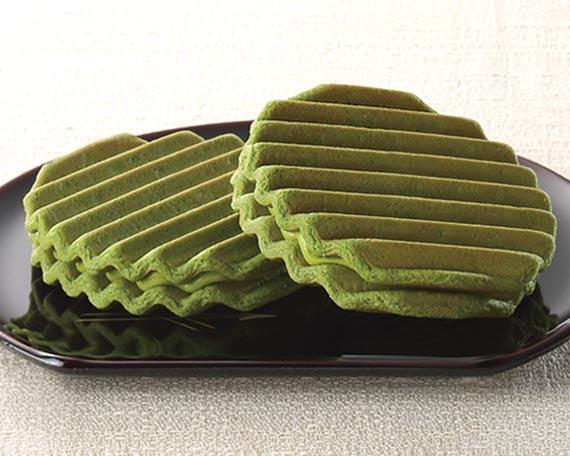 抹茶風味の生地で、ほろ苦く濃厚な抹茶クリームを挟んだ洋風せんべいです。