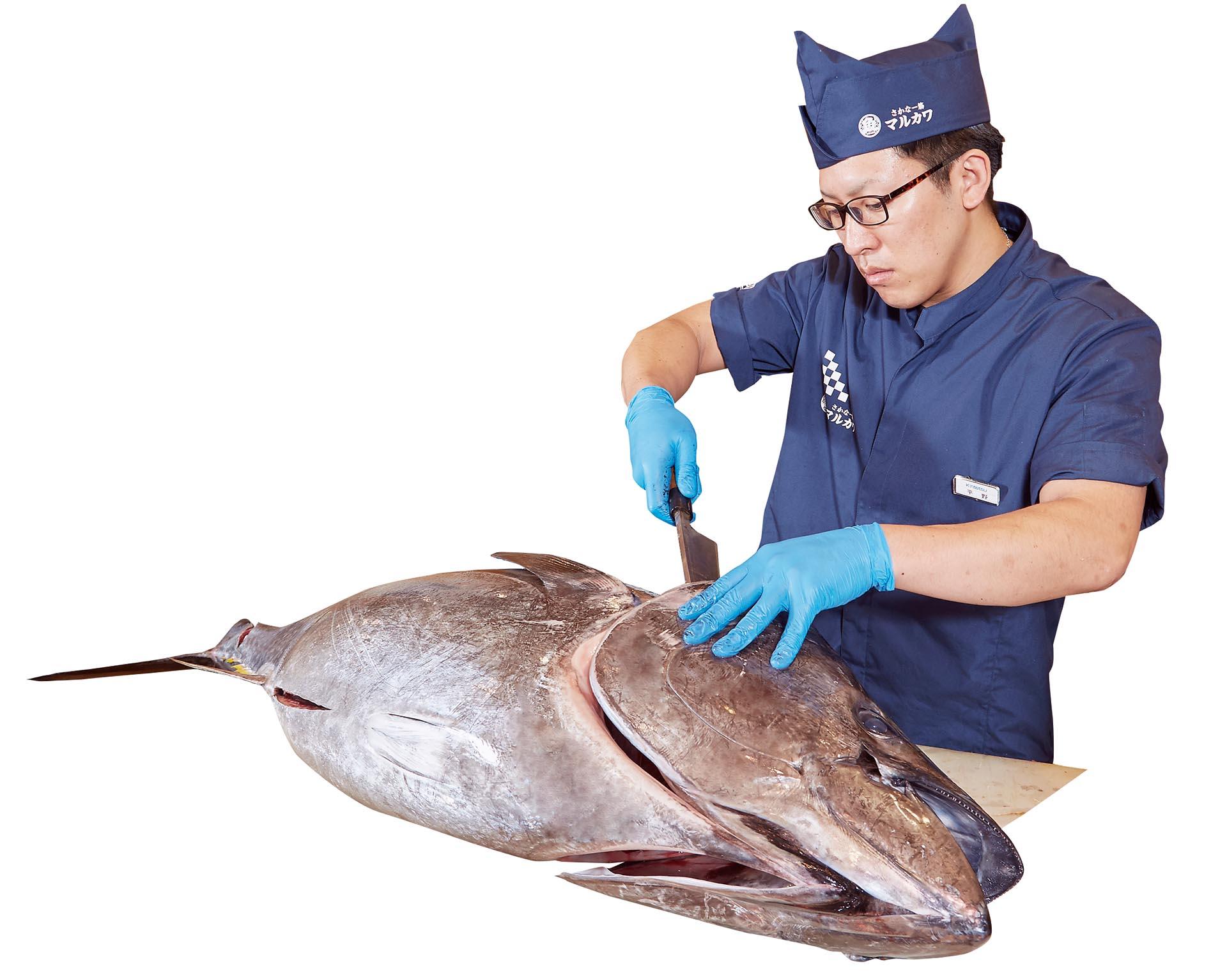 職人が包丁1本でマグロを解体していきます。