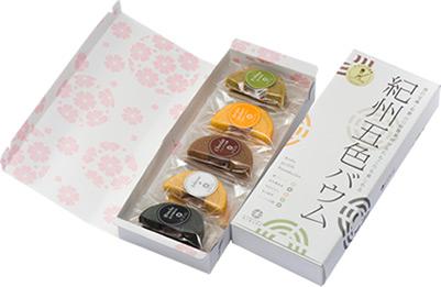 5種類の和歌山らしい素材を使ったしっとりしたバウムクーヘンです。