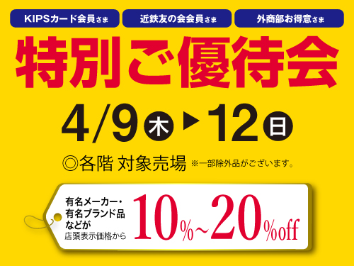KIPSカード会員さま・近鉄友の会会員さま・外商部お得意さま 特別ご優待会