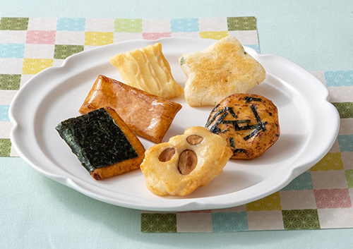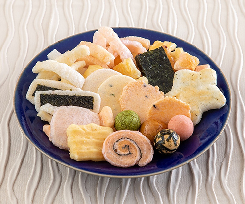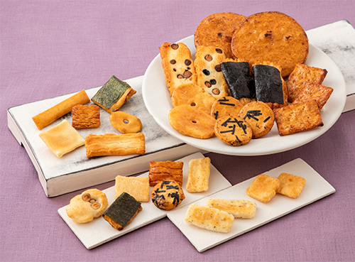 あられ、えびせんべい、豆菓子などをバラエティー豊かに。