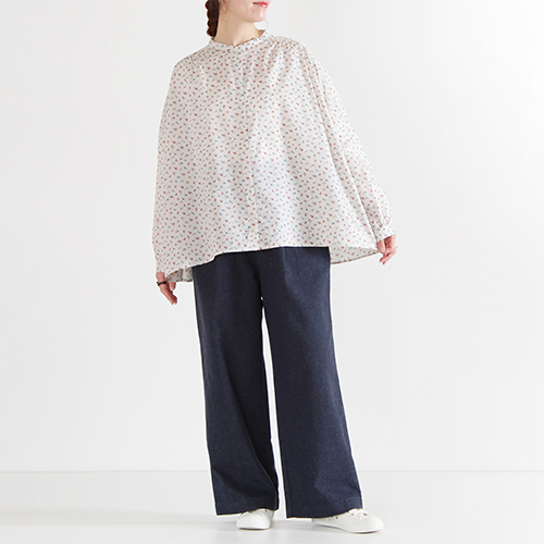 花柄バンドカラーブラウス