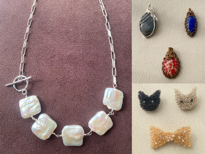 天然石・淡水パール・ワイヤーを合わせて創るオリジナルアクセサリーです。