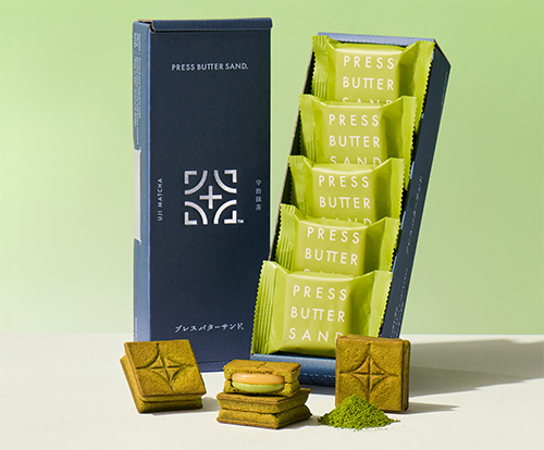 すっきりとした苦味と香りの良い宇治抹茶を使った緑鮮やかな抹茶バタークリームとバターキャラメルをサンド。