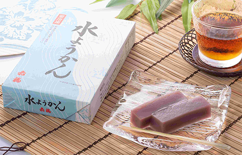 北海道産小豆のこし餡を、すっきりした甘さの瑞々しい水ようかんに仕立て、折箱に流し込んだ「一枚流し」の商品です。お好みの大きさに切り分けてお召し上がりいただけます。