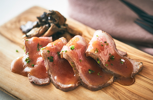 牛肉のグリル 霜降りひらたけロースト添え