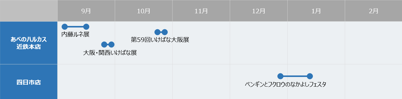 ・あべのハルカス近鉄本店12階~14階、上本町店12階、橿原店7階、生駒店6階、草津店5階、四日市店9階・10階の各レストラン街およびふれあいモール(喫茶は除く)における3,000円以上(税別)のご飲食の場合、ご飲食代金(消費税を除く)を10%割引いたします。