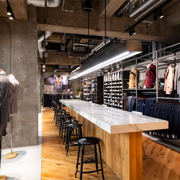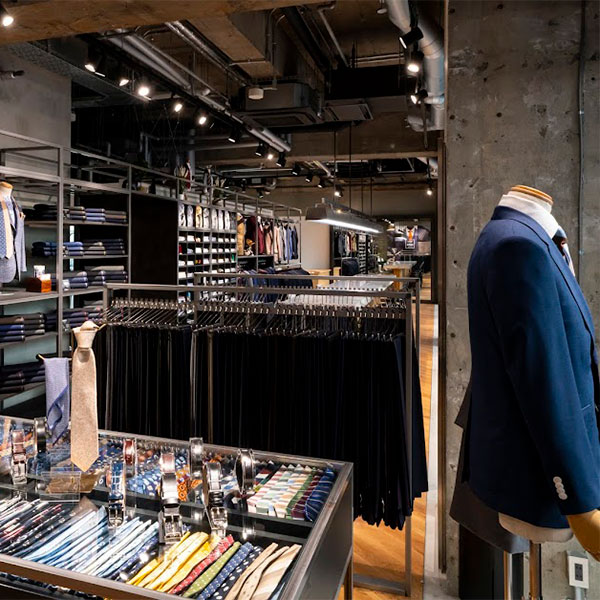 全国に50店舗、お客さまお一人お一人を採寸し型紙をコンピューター上で越し機械を使い縫製します。