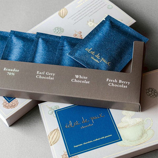 オリゴ糖を多く含むヤギミルクを使用したホワイトチョコレートや、カカオポリフェノールを含む廃カカオが入ったアソート。