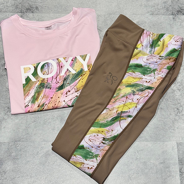 同柄のレギンスとセットアップで着用が可能。速乾、UVカット機能付き。水陸両用ウエア。