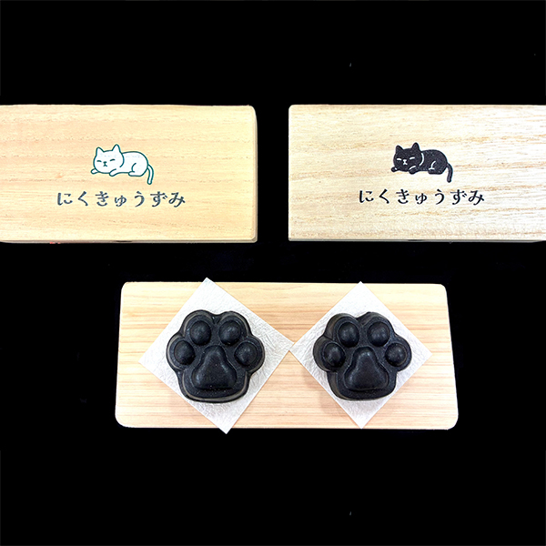 ネコ好きさんはモチロン、そうでない方も思わず笑顔になる「にくきゅう」型のれっきとした『墨』です。桐箱のデザインもそそられます!