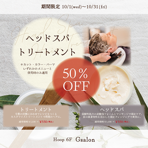 ヘッドスパ・トリートメントのオプションメニューが50%OFF!!