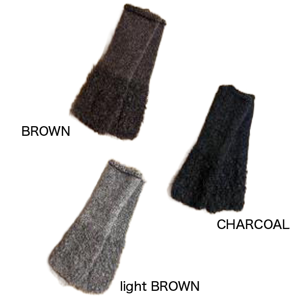 アルパカの混紡糸を使用した暖かなハンドウォーマー。ふんわりと柔らかく、優しい肌触りです。BROWN、CHARCOAL、lightBROWNの3色展開です。