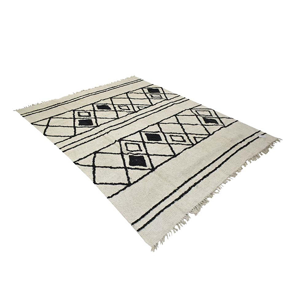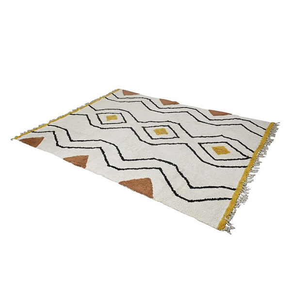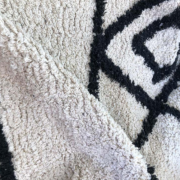 コットン素材の柔らかな手触りが人気のNOCEオリジナルラグ、足元が冷え込むこの時期にぜひ取り入れていただきたいアイテムです。落ち着いたベージュをベースにブラックのモロッコ風の柄はモダンでナチュラルな雰囲気。お部屋のテイストを問わずお選びいただけます。