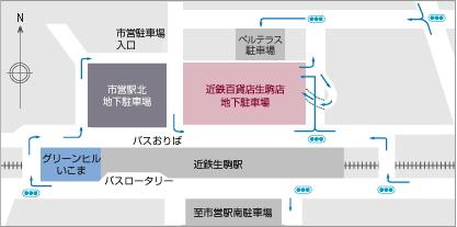 近鉄百貨店生駒店地下駐車場はレシートを駐車場ご優待受付へお持ちください。 ベルテラスいこま自動車駐車場、市営駅北駐車場、市営南駐車場は駐車券とレシートを駐車場ご優待受付へお持ちください。