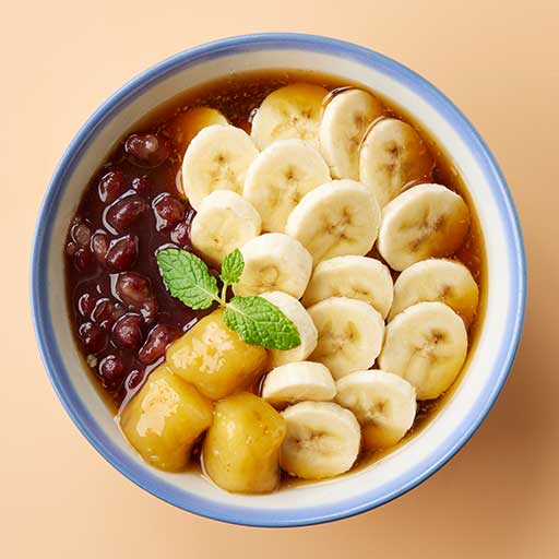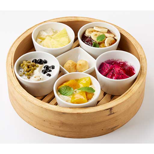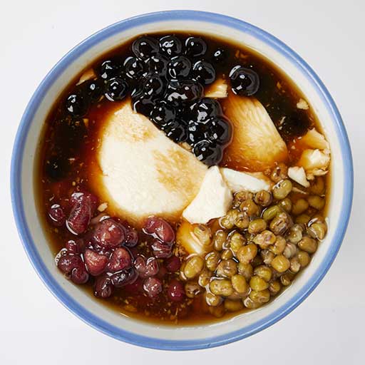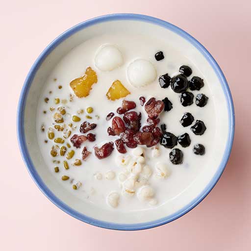 ココナッツミルクをベースにしたスープに、緑豆・ハト麦・いももち・タピオカなど歯ごたえのあるトッピングと滑らかな豆花を加えた、南国の風味が感じられるデザートです。
