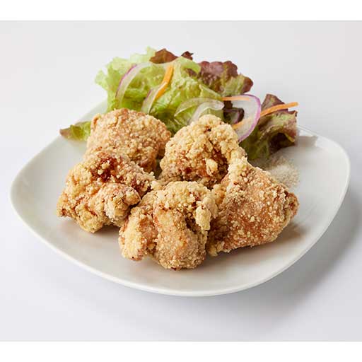 五香粉をはじめとした下味にたっぷりと漬け込み、スパイシー、かつジューシーに仕上げました。カリカリの食感、スパイシーな香りが特徴です。