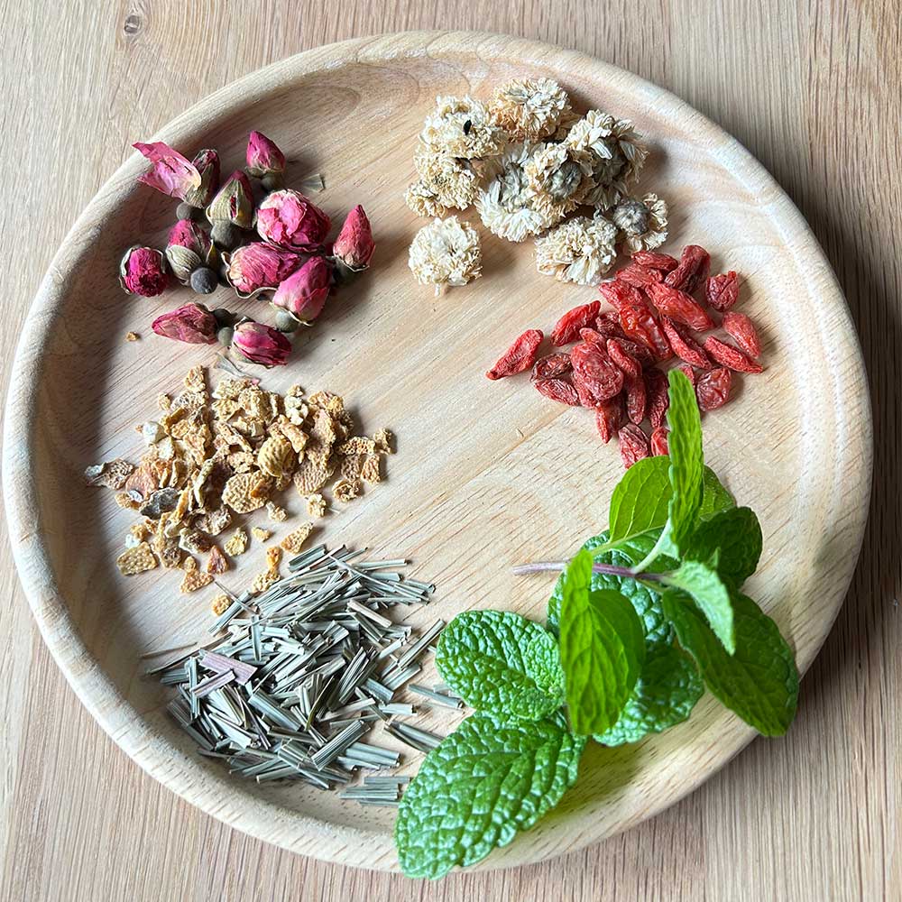 春によい薬膳茶のご紹介と実際にブレンドして試飲もしていただきます。